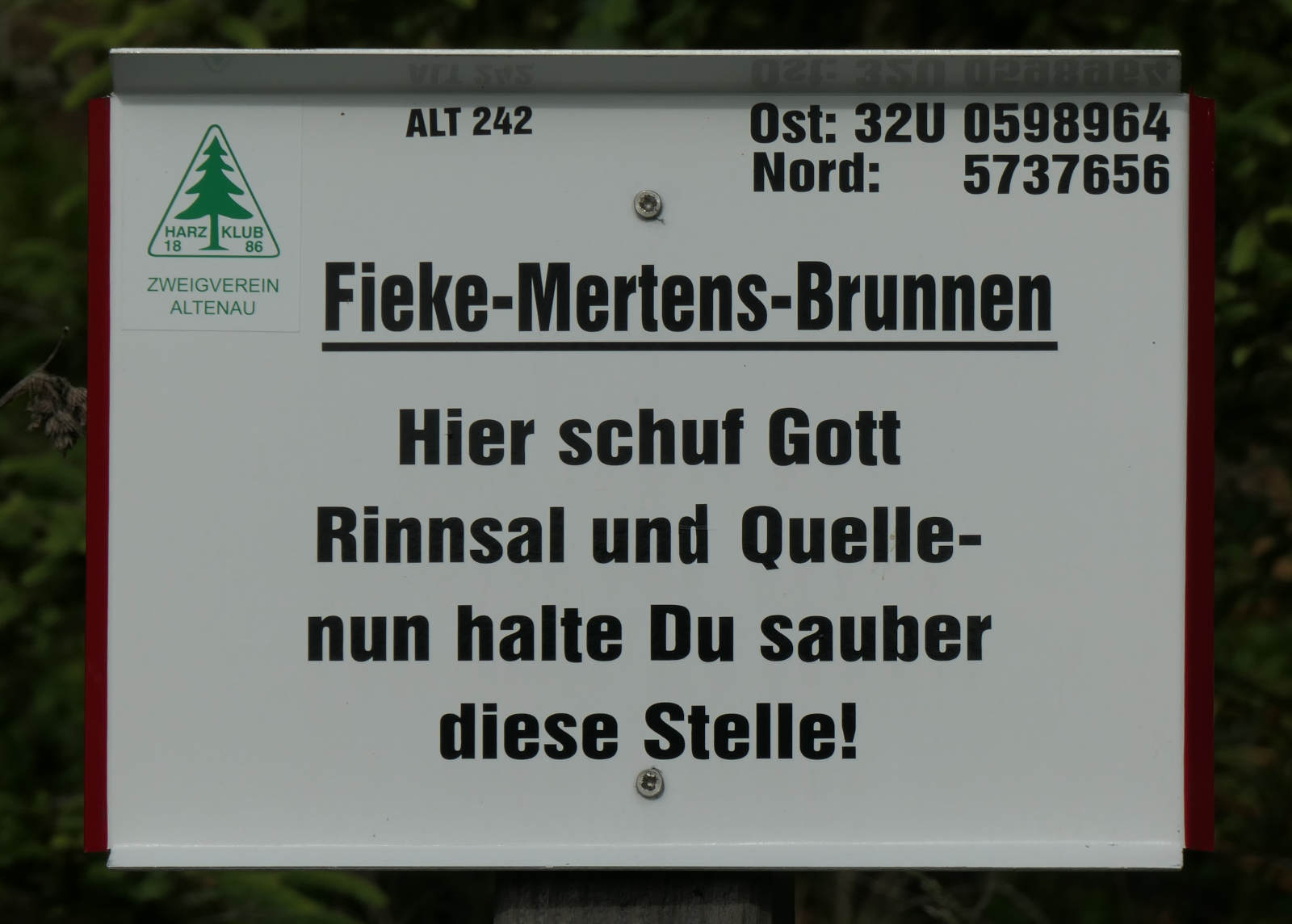 Under mitt besök i slutet av maj 2025 kom vattnet tyvärr bara i droppar. Detta gör det ännu mer sant: varje droppe vatten räknas! Källan renoverades 2022-2024, se rapporten i Altenauer Wilddieb (PDF, sidan 2, på tyska). Och den bekväma bänken inbjuder till att dröja kvar!