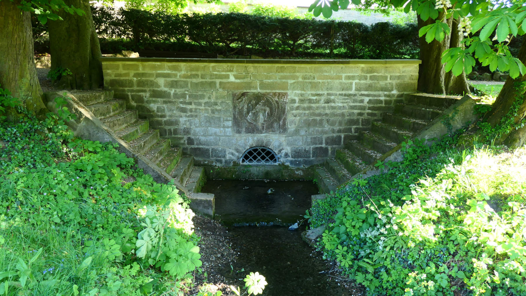 Relativt vattenrik källa, med vackert inredda omgivningar som inbjuder dig att stanna kvar en stund.