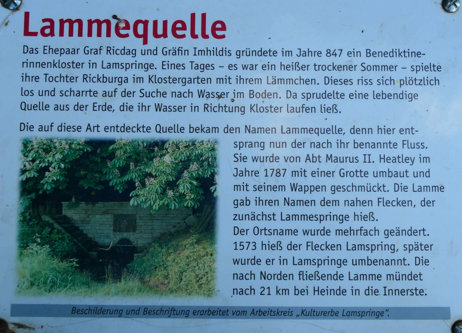Med ett genomsnittligt vattenflöde på 2000 liter per sekund är karstkällan Rhumequelle den fjärde starkaste källa i Tyskland efter Aachtopf, Paderquelle och Blautopf. Både vattenflödet och vattentemperaturen förändras väldigt lite under året. Fynd i botten av källan tyder på att det är en historisk offerkälla, med hänvisning som går tillbaka till den tidiga neolitiska bandkeramiska perioden. Ytterligare information om källan finns på www.wikipedia.org (på tyska). Jag blev väldigt imponerad av det höga antalet besökare till källan!