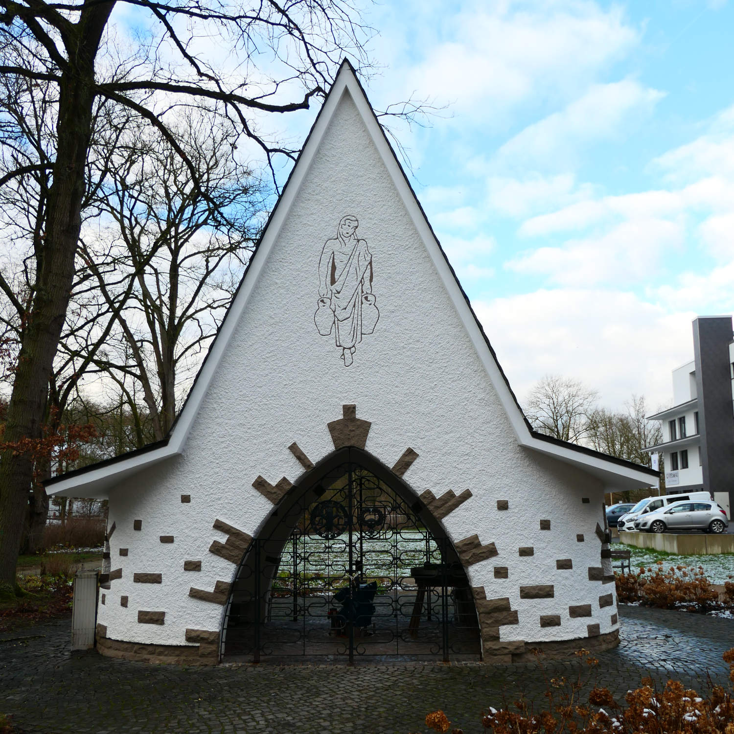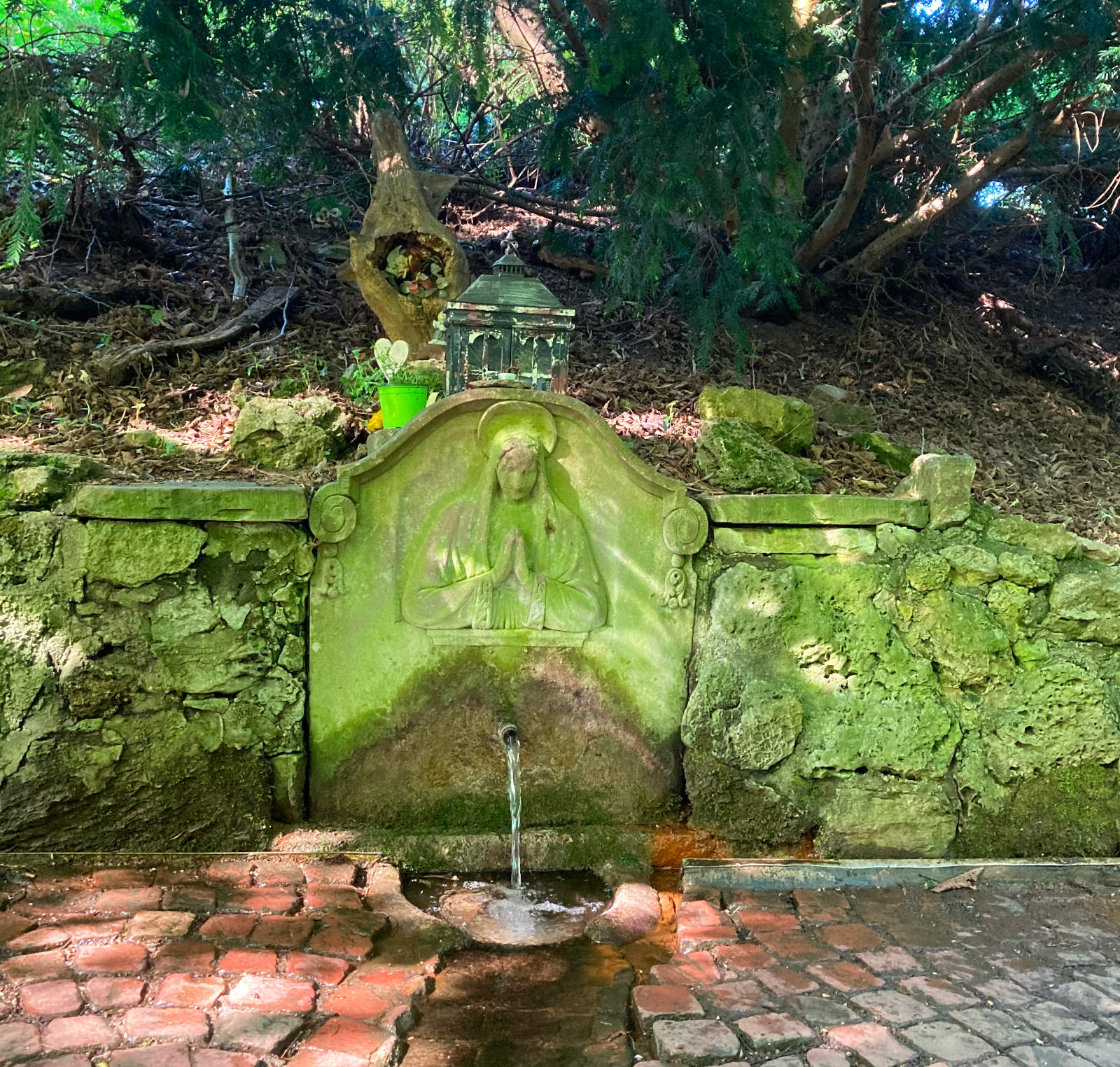 - min hemkälla! På motsatta sidan av gatan: en vacker vägkanten helgedom.