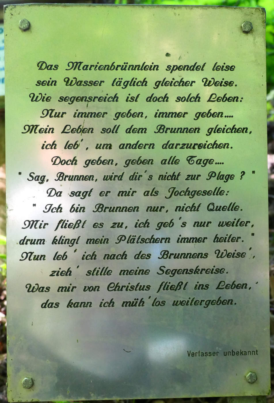 En annan källa i mitt hemmabys område. Kaltenbrunn är en tuffkälla. År 1500 är inristat i fontänrummets krön, vilket ger en indikation på dess ålder. Du kan klicka på informationstavlan för att förstora den, klicka sedan på bilden igen vid behov.