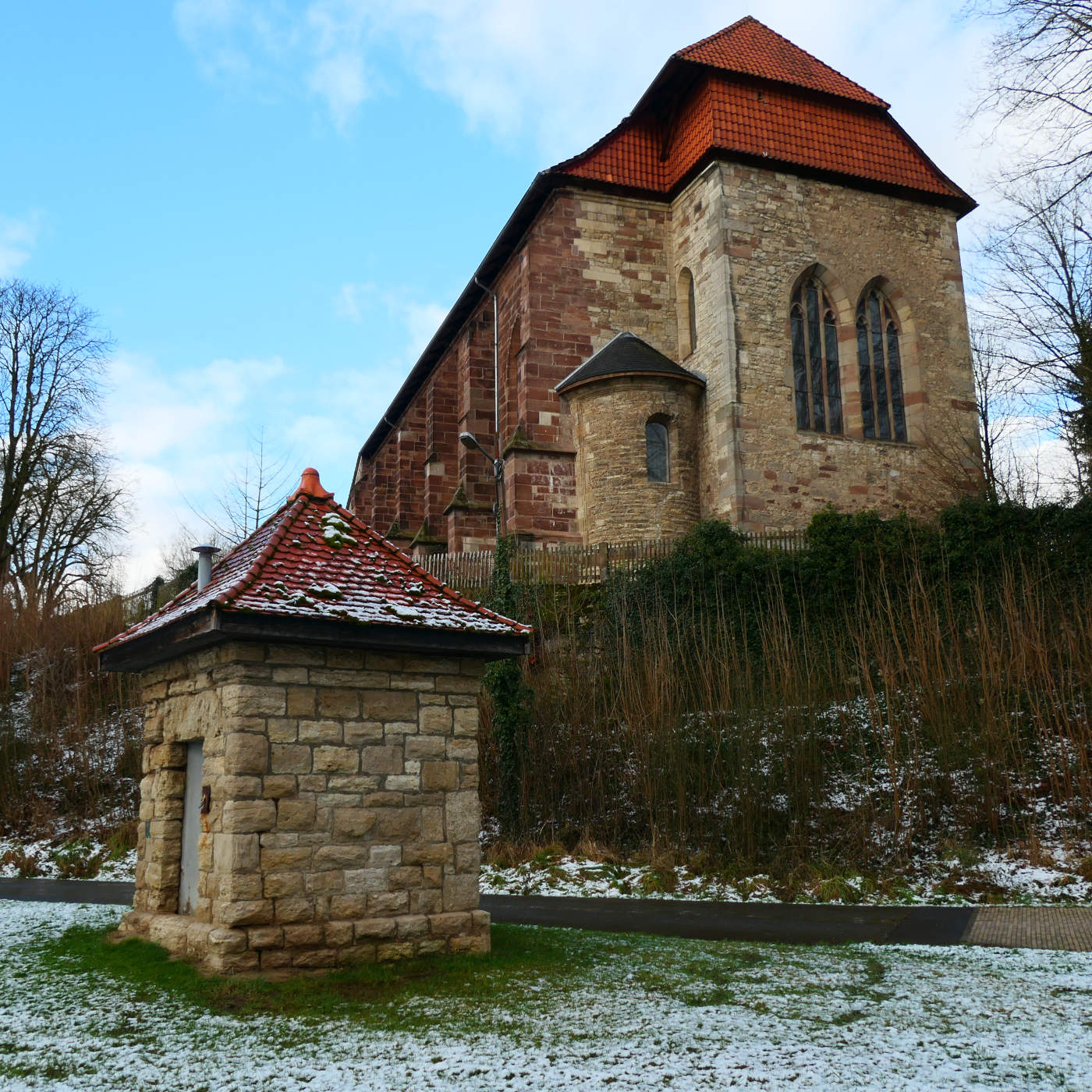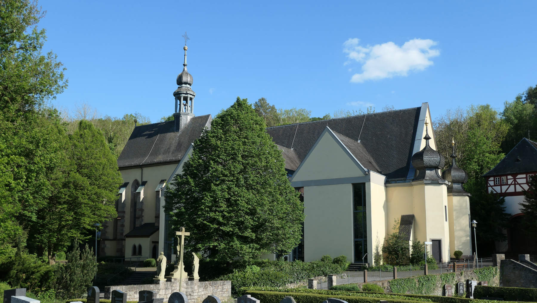 Marienbrünnchen (eller Marienbrünnlein), vars källvatten sägs ha helande egenskaper, ligger intill pilgrimskyrkan Maria im Grünen Tal. Mer information på bistum-wuerzburg.de (på tyska). Kneipp-anläggningen och hälsoträdgården inbjuder dig också att dröja kvar.