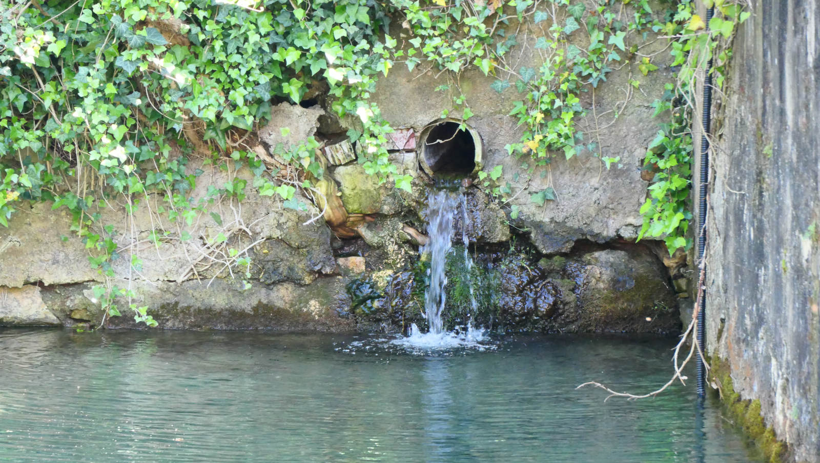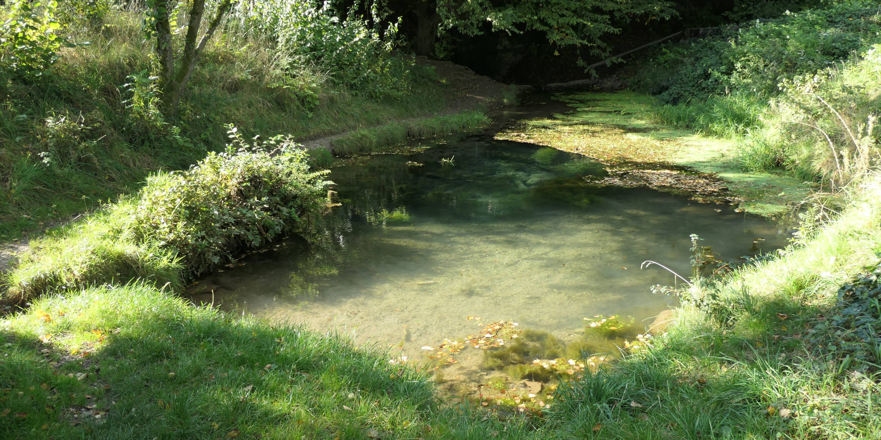 En ganska dold (mitt i den första bilden) - och inte så lättillgänglig - artesisk källa med imponerande vattenflöde.