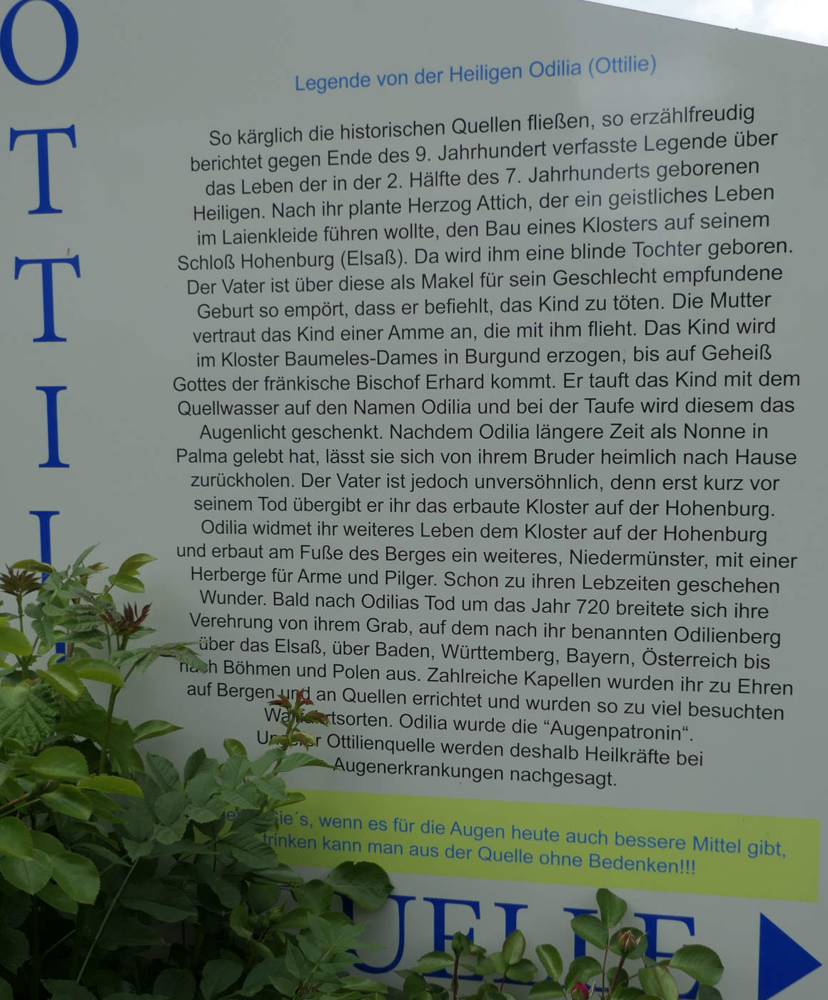 Inspirerade av berättelserna om Pfahlenheim i samlingen "Gamla berättelser och legender från Ochsenfurtdistriktet" av läraren och lokalhistorikern Peter Högler, gav vi oss ut för att besöka den berömda Ottilien källan i byns sydvästra utkant. Den vackra, imponerande källplatsen inbjuder till ett uppehåll. Enligt traditionen hjälper det mjuka vattnet till att lindra ögonproblem.